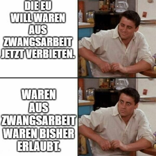 Den meisten von uns ist es bewusst, aber das macht es nicht weniger absurd: Es gibt bei uns keine Einschränkungen für Waren, die durch Zwangsarbeit entstehen.