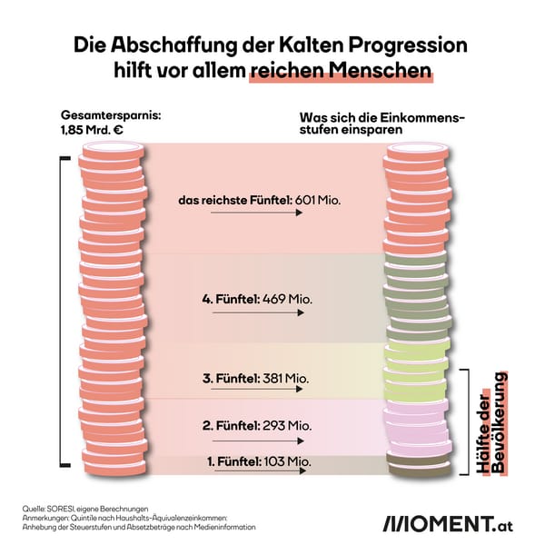 Finanzielle Entlastung für die Menschen? Bitte her damit. Gerade jetzt ist das dringend notwendig. Was aber wenig zielführend ist: Eine Entlastung, von der vor allem Wohlhabende profitieren. Die Abschaffung der Kalten Progression ist aber genau so eine Maßnahme. Das zeigt eine Analyse des Momentum Instituts.