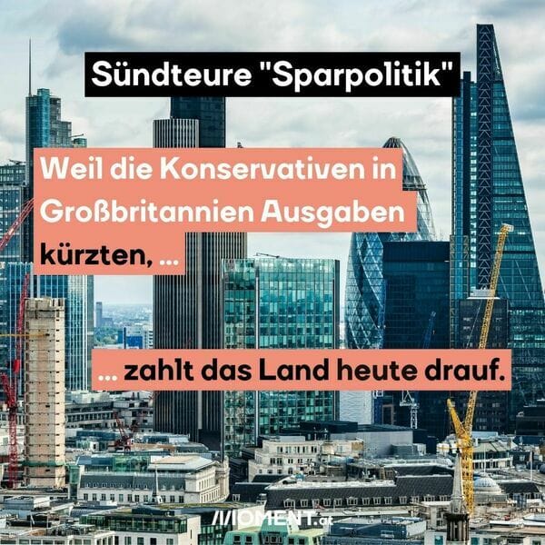 Wenn Rechte sich nicht gerade in leeren Dating-Apps vergnügen, machen sie unserem Planeten und unseren Sozialstaaten zu schaffen. Eindrucksvoll belegt haben das in der jüngeren Vergangenheit die britischen Konservativen. "Britannien hat eine einfache und unausweichliche Wahl: Stabilität und eine starke Regierung mit mir, oder Chaos mit [Anm.: dem Mittel-Links Kandidat] Ed Miliband", meinte einst ihr Premierminister David Cameron in einem legendären Slogan. 7 Jahre, 4 konservative Premierminister:innen, einen Brexit und eine soziale Krise später zeigt sich wieder einmal: ihre "Sparpolitik" ist richtig teuer. Fast 6 Milliarden Euro pro Jahr kostet es die Briten heute, dass Cameron mit seiner Regierung seit 2013 die Investitionen in Erneuerbare Energien und Energieeffizienz radikal zusammengekürzt hat. Denn deshalb haben viele Briten heute keine energiesparenden Häuser und weniger Windräder, dafür brauchen sie umso mehr Gas aus dem Ausland.