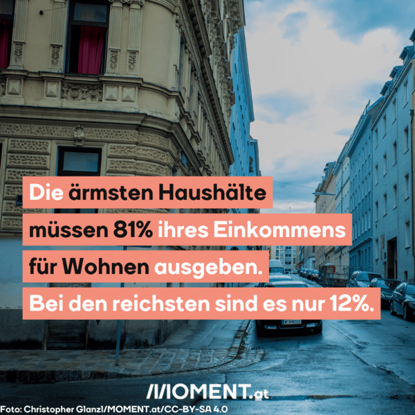 Das geht aus einer Berechnung des Momentum Instituts hervor. Herangezogen wurden dafür Daten aus 2020 - die Situation droht also, sich wegen der aktuellen Teuerung deutlich zu verschärfen. Berücksichtigt wurden dafür alle Kosten, die mit Wohnen zusammenhängen: Miete, Betriebskosten, Energie, Wasser, Kredite und Instandhaltung.