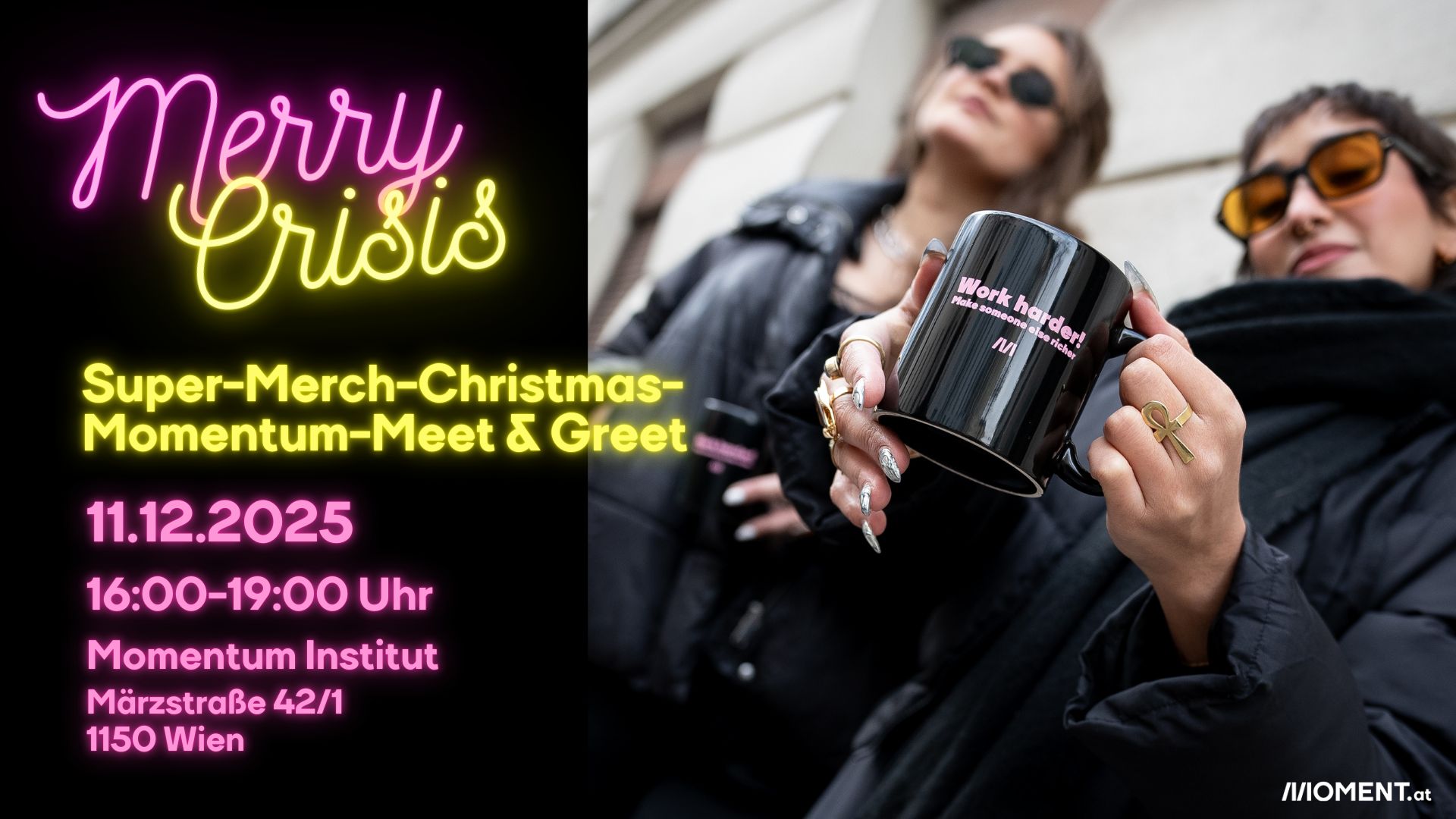 Besuch uns am Donnerstag, 11. Dezember, ab 16 Uhr und triff Barbara Blaha und das MOMENT-Team in der Märzstraße 42/1, 1150 Wien.
