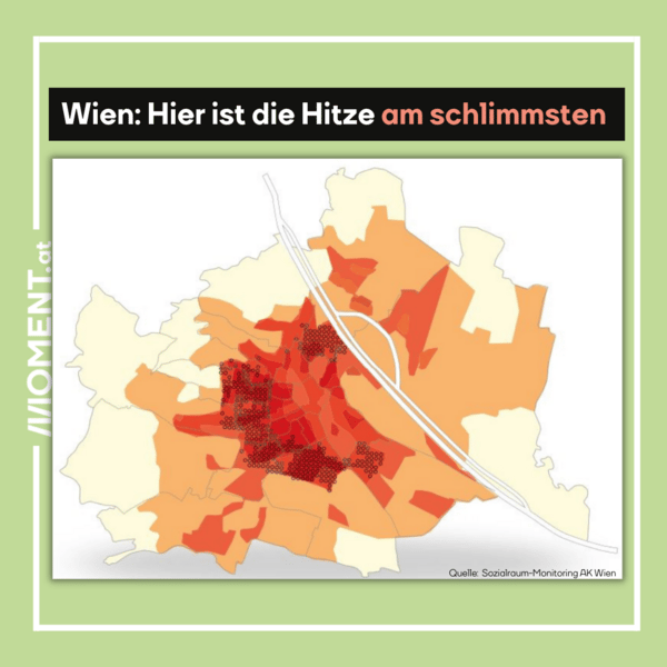 In Wien steigen die Temperaturen - aber nicht überall spürt man die Klimakrise gleich. Die neue “Hitze-Karte” der Arbeiterkammer Wien zeigt, in welchen Zonen sich die Stadt am stärksten aufheizt. Vor allem die Einwohner:innen in der Nähe des Wiener Gürtels leiden am meisten unter der Hitzebelastung. Genau dort wohnen auch Menschen mit weniger Einkommen und niedrigem Bildungsstand.