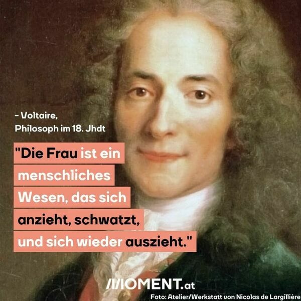 Das kann ein Problem sein. Wie bei vielen seiner Kollegen finden sich sexistische, rassistische und antisemitische Aussagen in seinen Werken. Frauen werden dann Wesen, die "schwatzen". Das Frauenbild von Voltaire wird nur wenig diskutiert. Manche sehen in den Frauenfiguren seiner Bücher sogar feministische Ansätze.