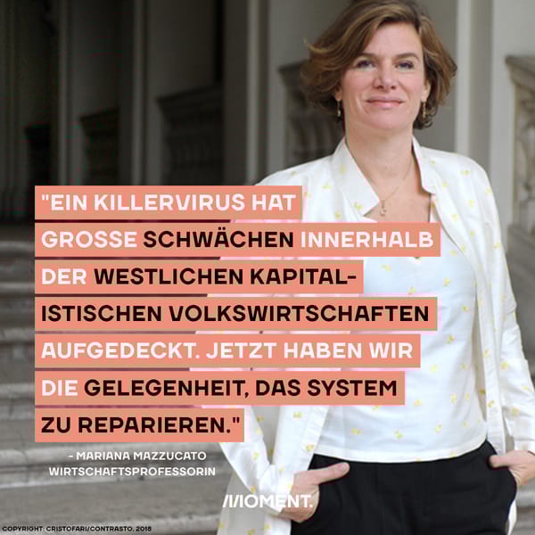 Wirtschaftsprofessorin Mariana Mazzucato: "Ein Killervirus hat große Schwächen innerhalb der westlichen kapitalistischen Volkswirtschaften aufgedeckt. Jetzt haben wir die Gelegenheit das System zu reparieren." Hier der ganze Artikel der Ökonomin auf Englisch.