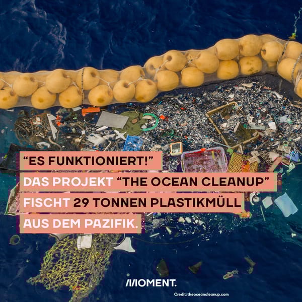 Der Pazifik ist jetzt ... fast sauber. Das Projekt "The Ocean Cleanup" hat 29 Tonnen Plastikmüll von der Meeresoberfläche beseitigt. Jetzt fehlen nur noch 150 Millionen weitere Tonnen, die in den Weltmeeren herumschwimmen. Aber irgendwer muss ja den Anfang machen.