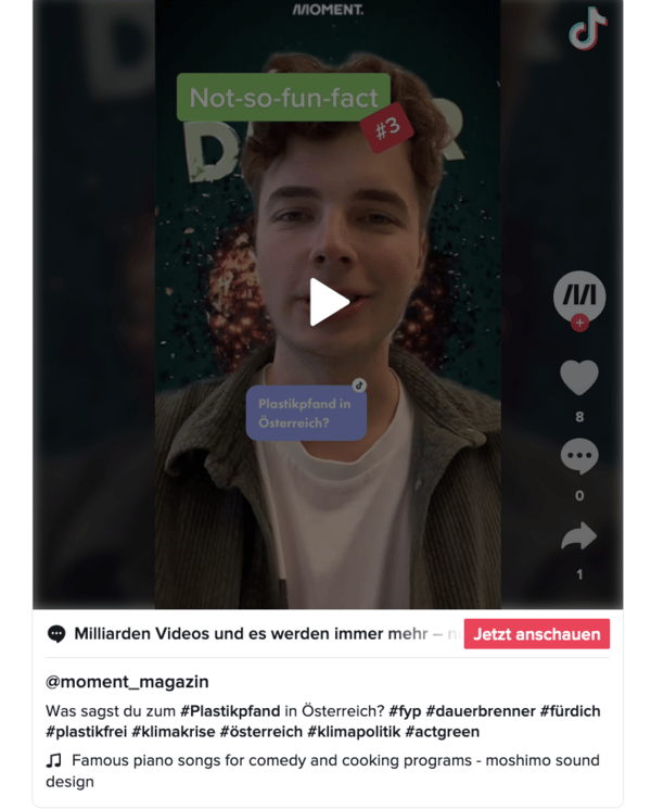 Was können wir tun, damit mehr Blauwale als Plastikteile im Meer schwimmen? Österreich ist dabei, Plastikpfand einzuführen. Klima-Aktivist Florian Boschek hat heute wieder einen "Not-so-fun-fact" für dich.