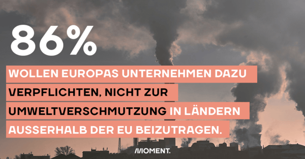 Sie stimmen der Aussage zu, Unternehmen sollten rechtlich dazu verpflichtet werden, sicherzustellen, dass sie in Ländern außerhalb der EU nicht zu Umweltschäden beitragen. Das zeigt eine repräsentative Umfrage, die unter anderem von Umweltorganisationen in Auftrag gegeben wurde.