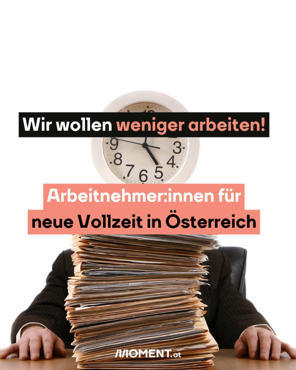 Vollzeit heißt in Österreich in der Realität, durchschnittlich 40,8 Stunden die Woche zu arbeiten. Die gesetzliche Normalarbeitszeit von 40 Stunden wurde seit 50 Jahren nicht mehr angepasst. Österreich hat im EU-Vergleich die dritthöchste Arbeitszeit. Die meisten Arbeitnehmer:innen wollen, dass die Normalarbeitszeit verkürzt wird. Das ergibt eine Umfrage der Arbeiterkammer unter 4.700 Befragten.