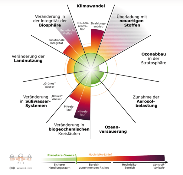 Durch menschliche Aktivität sind die planetaren Grenzen heute weitgehend ausgeschöpft oder bereits überschritten: