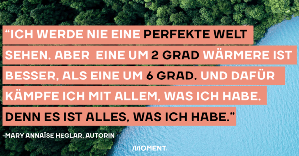 Da fällt es schwer, nicht in Hoffnungslosigkeit zu verfallen oder sich zu denken: “Eh alles schon egal”. Mary Annaïse Heglar sagt in ihrem Text “Home is Always Worth It”, man könne auch akzeptieren, dass man hoffnungslos werde. “Wir können erkennen, dass Hoffnungslosigkeit nicht Hilflosigkeit bedeutet.” Und mit dieser Einstellung können wir vielleicht mit weniger Last auf unseren Schultern umso mehr gegen die Krise kämpfen.