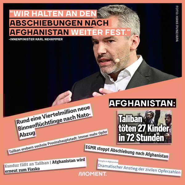 Und die österreichische Regierung? Die verlangt, dass Abschiebungen weiter durchgeführt werden. Innenminister Karl Nehammer (ÖVP) hat jetzt sogar eine Initiative mit fünf anderen Ländern der EU gestartet um das zu ermöglichen. Die Gruppe hat jetzt die EU-Kommission in einem Brief aufgefordert, sich weiter für die Rückführungen nach Afghanistan einzusetzen. Nehammer ist der Meinung, dass es “ein Armutszeugnis der Europäischen Union ist, dass wir nicht mehr Charterflüge zustande bringen.” Wohl wissend, was das für die Menschen bedeutet.