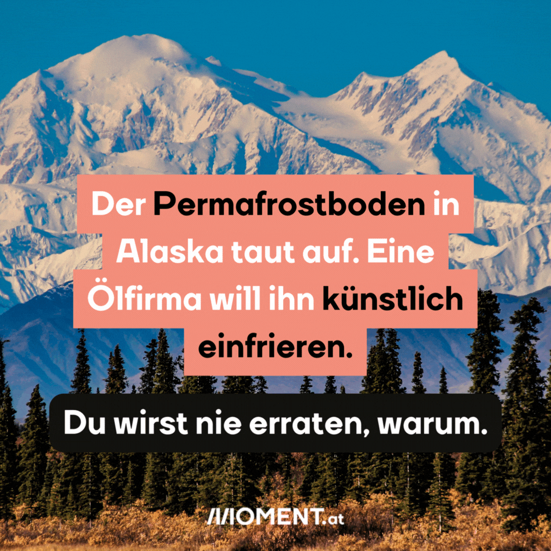 Wenn dich das Video ins Handeln treibt, dann gibt die nächste Meldung gleich Anlass dazu - oder zumindest zur Wut. Denn der Permafrostboden in Alaska taut wegen der Erderhitzung immer schneller auf. Die wird vor allem durch das Verbrennen von fossilen Brennstoffen verursacht. Ein Konzern, der damit viel Geld verdient, will den Boden jetzt wieder künstlich einfrieren. Nicht um uns zu retten, sondern um noch mehr Öl aus dem Boden zu holen, das wieder verbrannt werden kann.